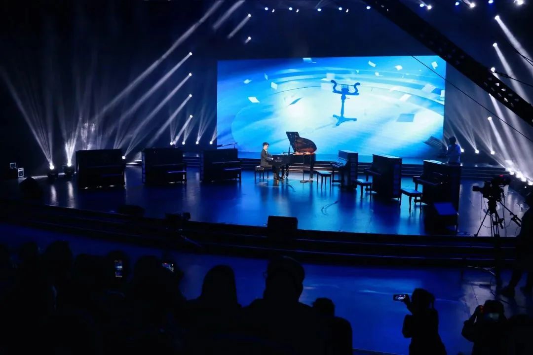 頒獎儀式后,所有獲獎選手登臺,為大家?guī)砭实难葑啵撉偕媳虐l(fā)的音符,充溢星河之間,新星熠熠,他們共同用優(yōu)美的旋律紀念這一難忘的榮譽時刻。